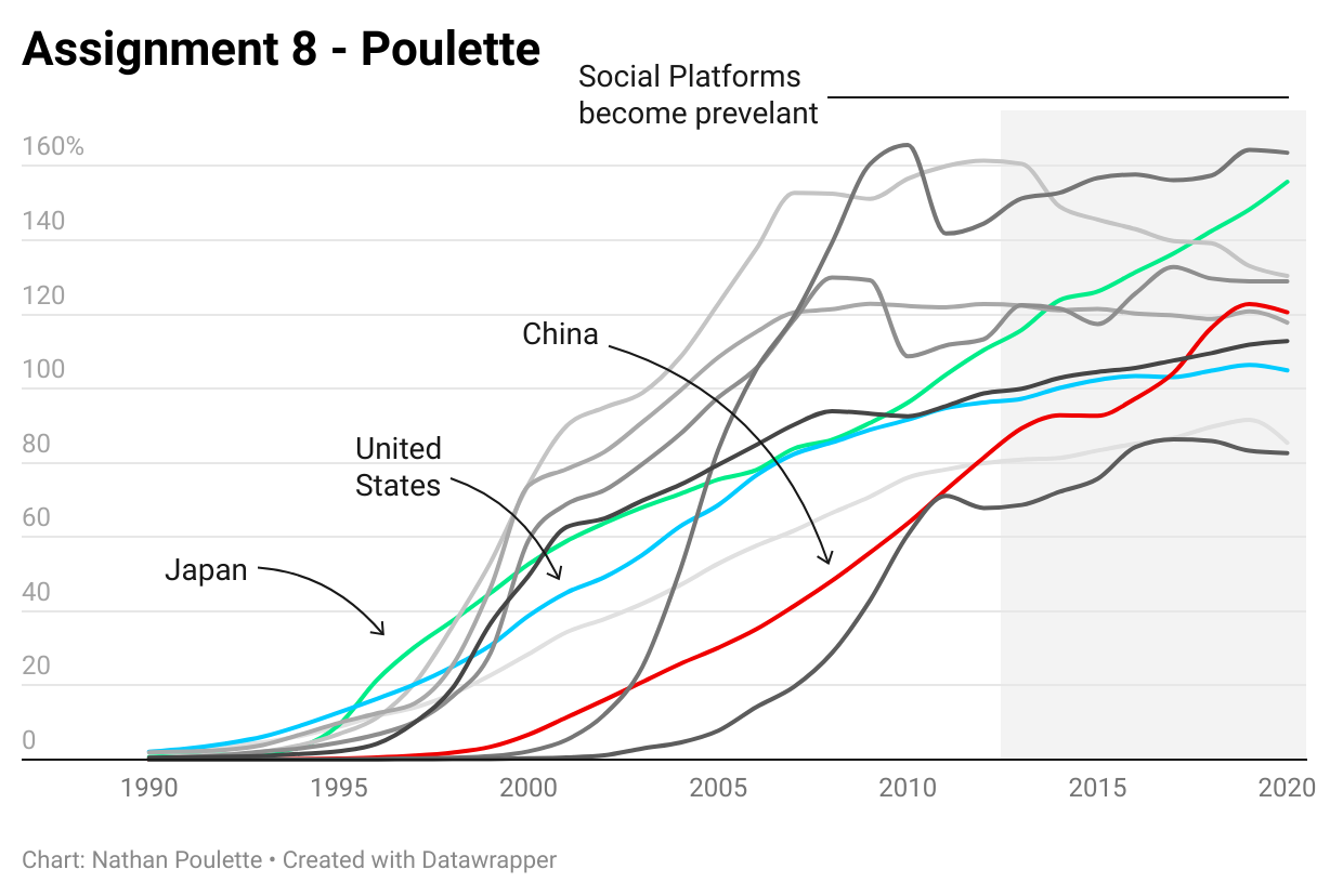 This was an exercise in using the website datawrapper.de. Given a set of data, the exercise was to replicate another graphic using the same sets of colors and lines.